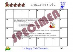 Les grilles de tombola distribuées aux enfants de l'école de rugby sont à rendre lors de l'entraînement samedi 13 janvier, pour permettre de procéder au tirage au sort assez rapidement. Merci...