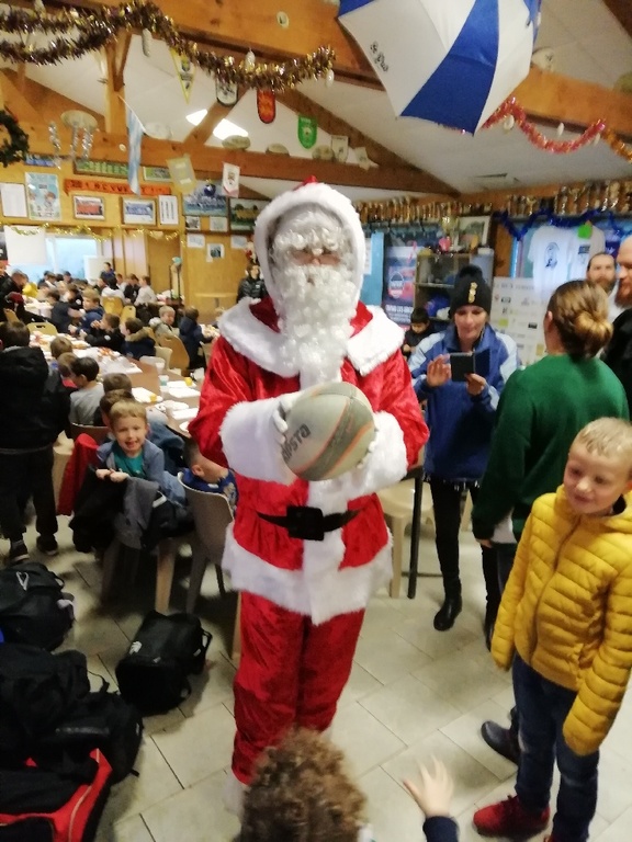 Samedi, après l'entraînement, effectué sous une pluie battante, et beaucoup de vent, l'Ecole de Rugby a eu la visite d'un invité de marque: Le Père Noël est venu distribuer des friandises à tous les enfants, ravis de le rencontrer avec un peu d'avance!!!